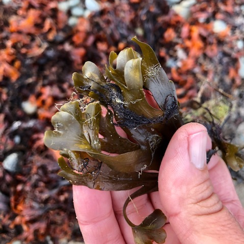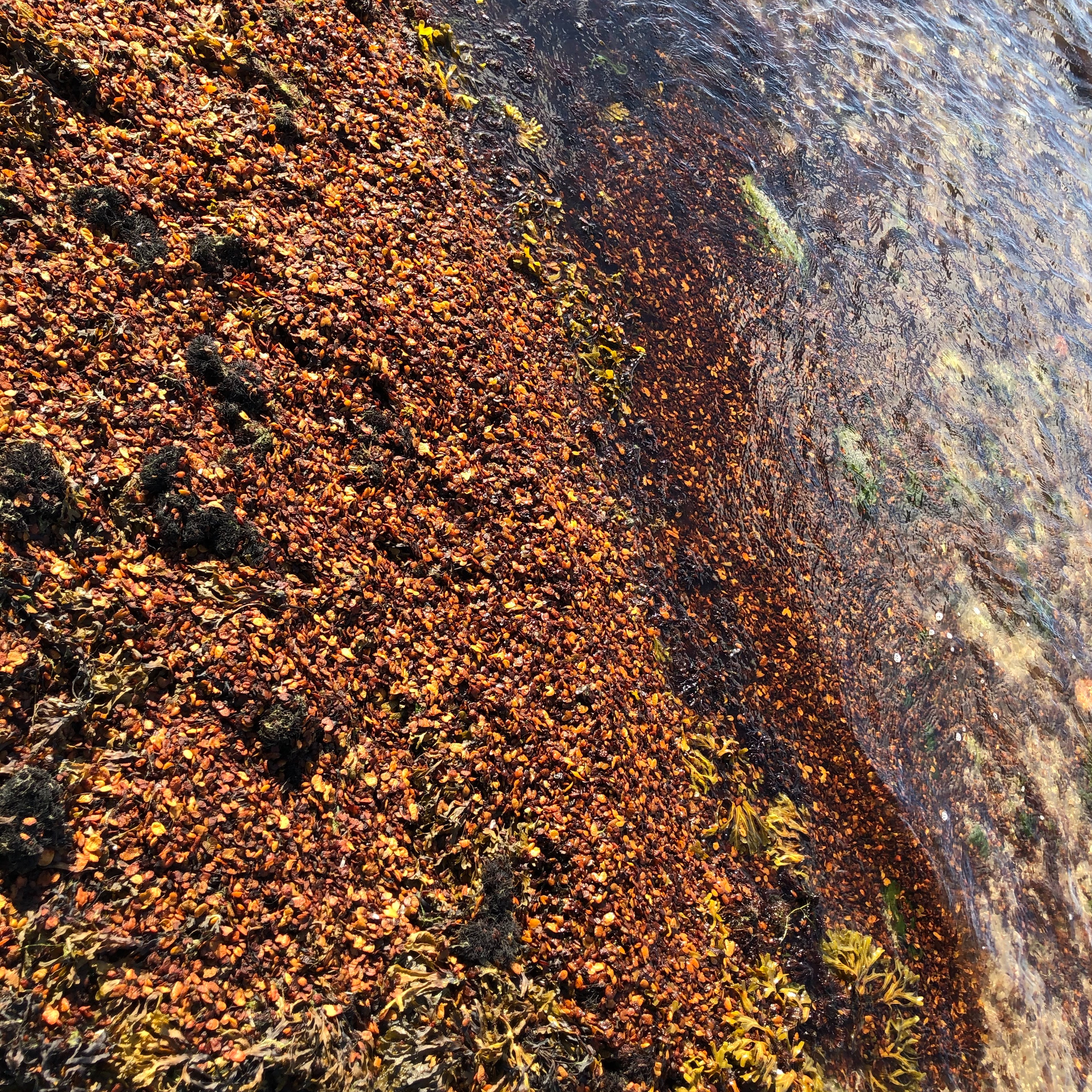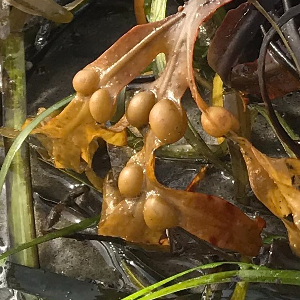 Vår vän Nanna Nore på Körsbärsgården på Gotland skickade oss några bilder på just detta fenomen. Vår tångkollega Ellen Schagerström på Tångbloggen bekräftade våra misstankar, att detta faktiskt är blåstång. På Gotland, där det kan vara rejält med vågor, saknar blåstången ofta flytblåsor.