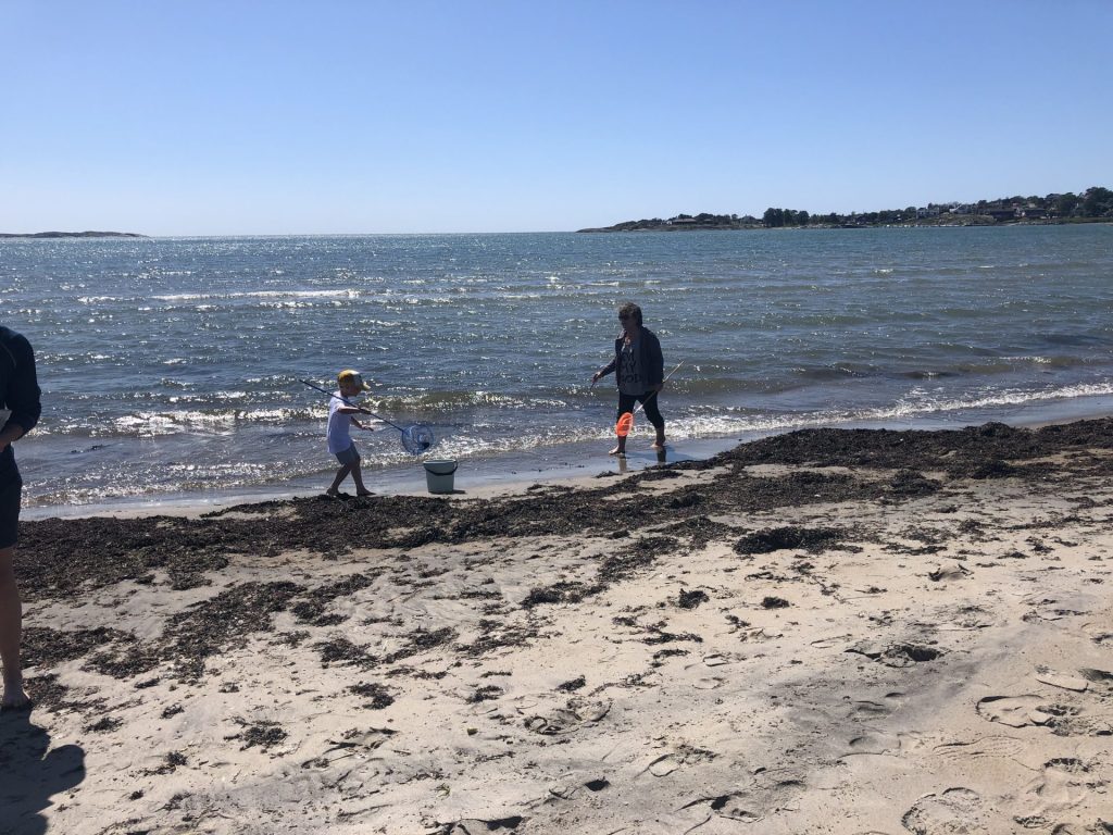 Vädret visade sig från sin bästa sida och solen sken från blå himmel när vi tillsammans vandrade ut i den mjuka sanden på Åsa Vita Sand. Efter en snabb introduktion till tångens fascinerande värld begav vi oss med håvar och hinkar ut till vattnet och strandkanten för att samla in spännande tång.